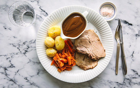 Vi garanterer mad, der gør dig glad. Vi tilbereder hver dag et stort udvalg af dejlige, hjemmelavede retter, som alle generationer kender og elsker. Bestil for minimum 200 kr., så leverer vi maden til døren gratis.